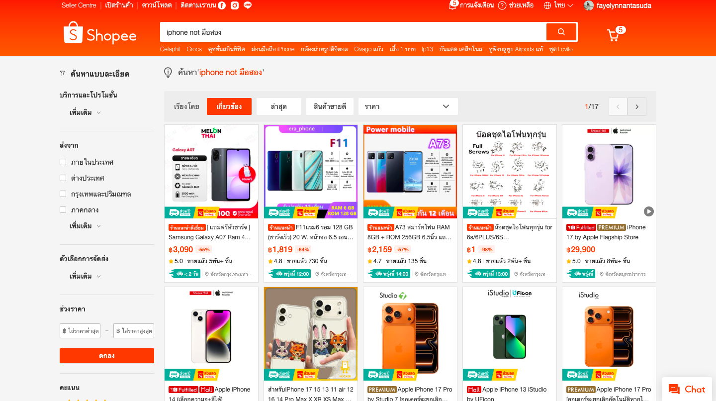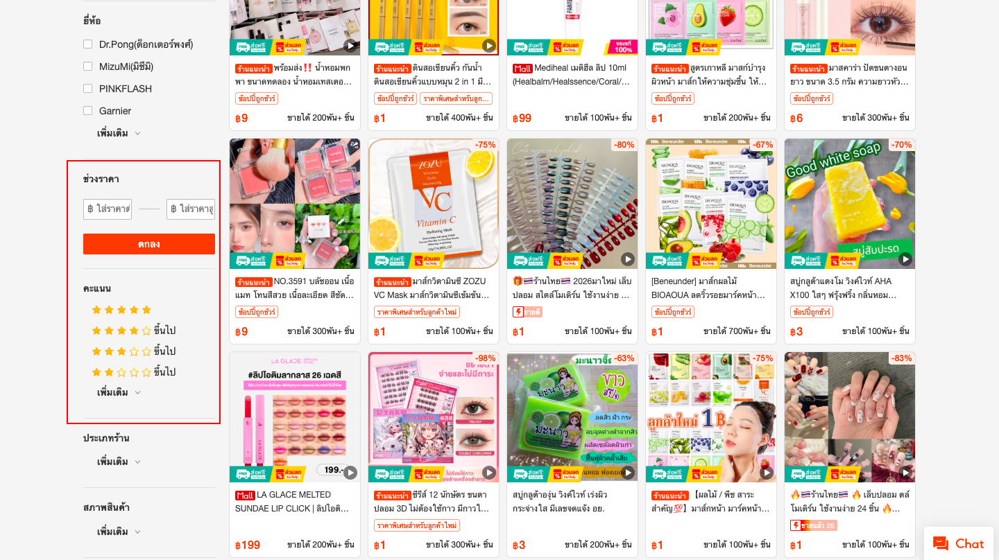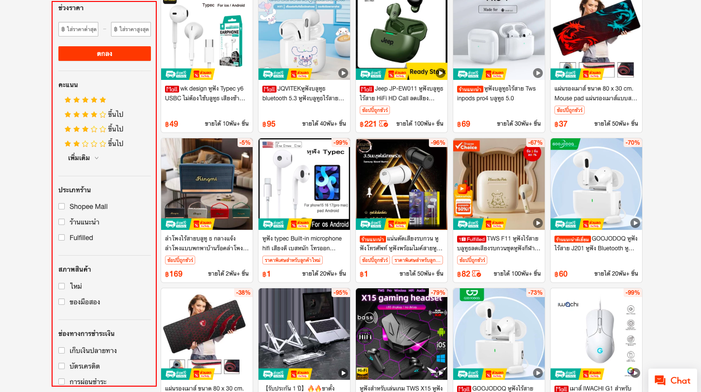 Filter → เลือกเงื่อนไขเพิ่มเติม เช่น ราคา หมวดหมู่