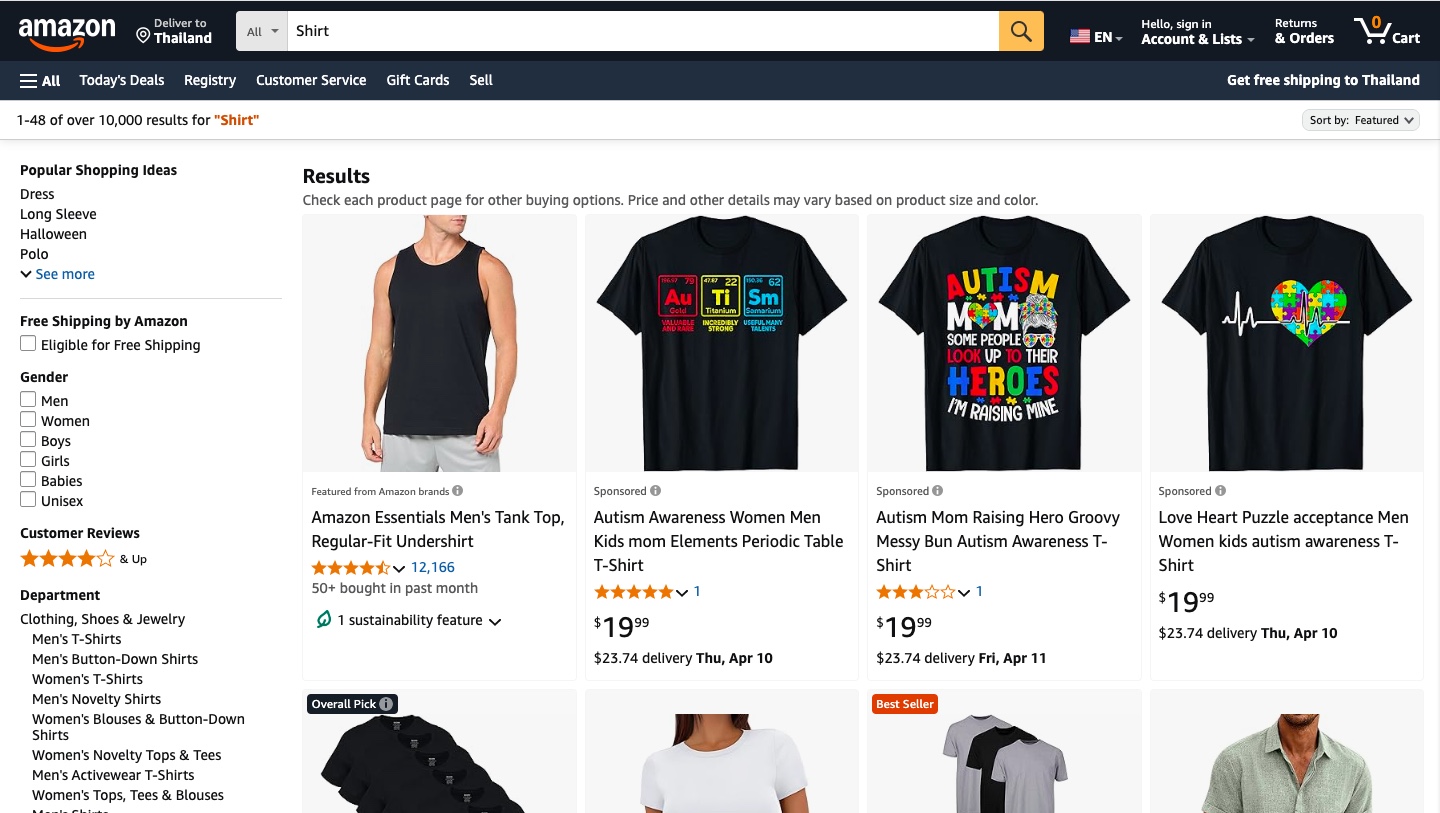 ค้นหา "เสื้อยืด" ระบบจะแสดงเป็น Grid View เพื่อให้เลือกดีไซน์ได้ง่าย