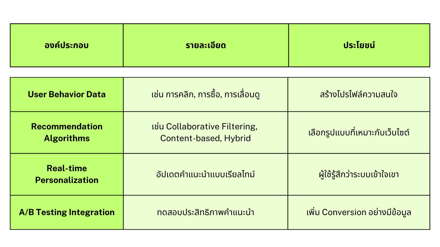 องค์ประกอบสำคัญของระบบ AI Recommendation