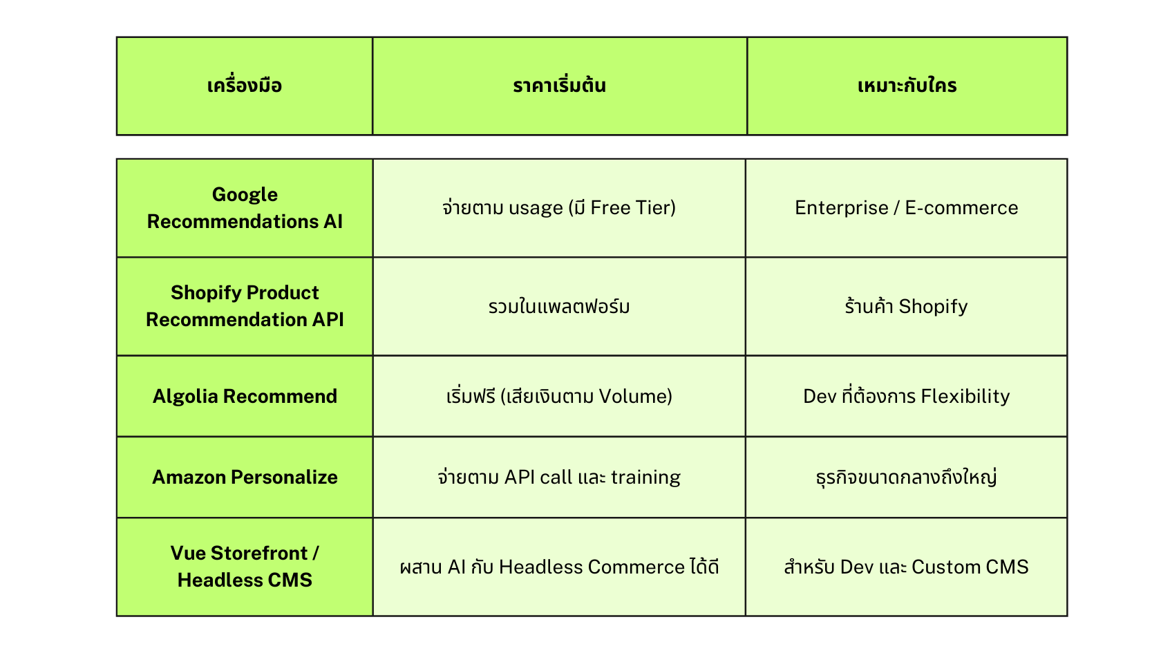 ราคา / เครื่องมือ AI Recommendation ที่แนะนำ